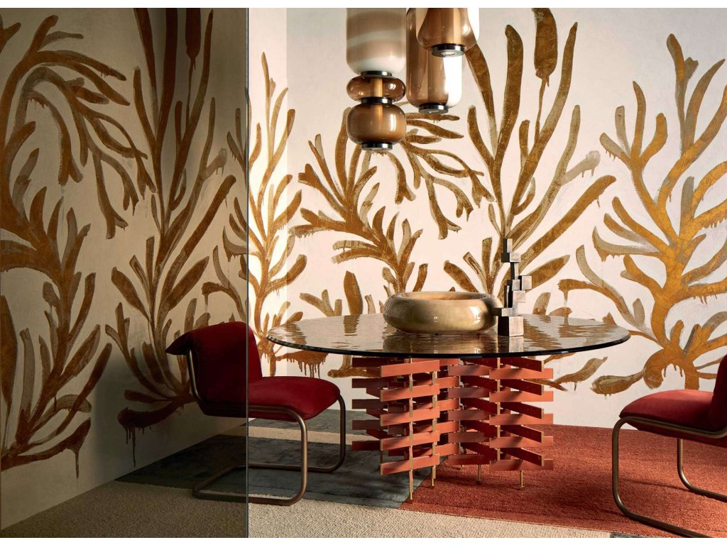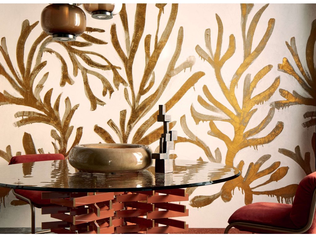 Tapeta Algues dorées v kolekci Kintsugi od Elitis je elegantní vzor inspirovaný mořskými řasami, který kombinuje organické tvary s jemnými zlatými detaily. Tento design evokuje podmořský svět a přináší do interiéru sofistikovanou a přírodní atmosféru. Zlaté akcenty dodávají vzoru luxusní nádech, který se stává výrazným uměleckým prvkem v interiéru.