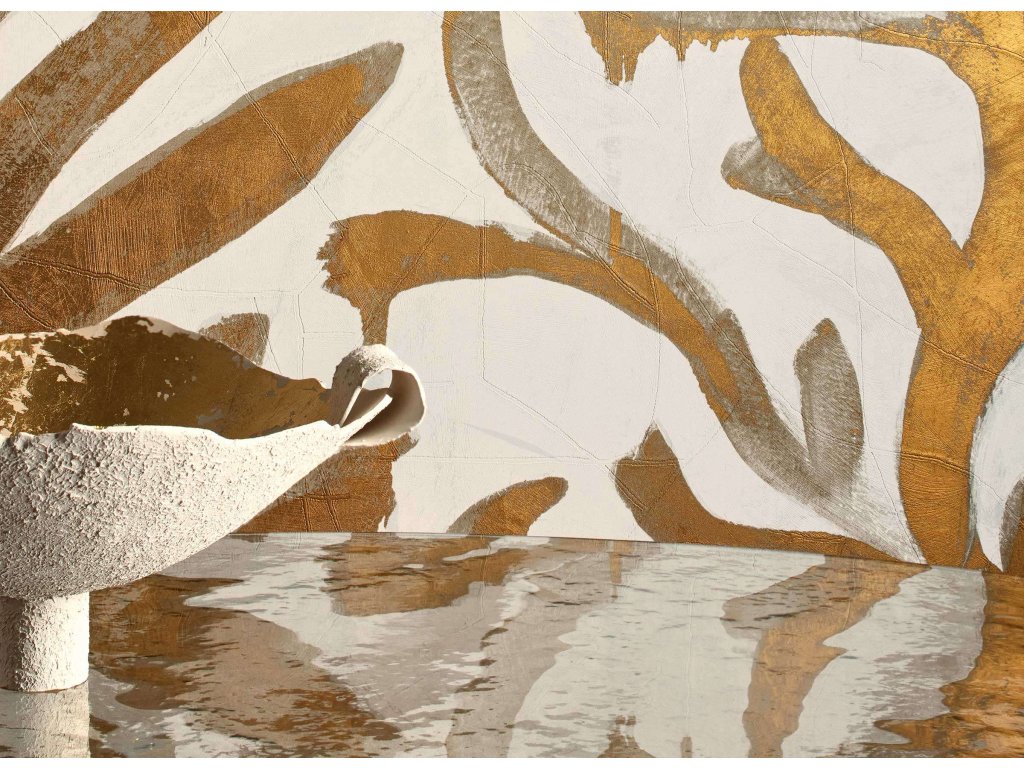 Tapeta je ozdobena plátkovým zlatem.