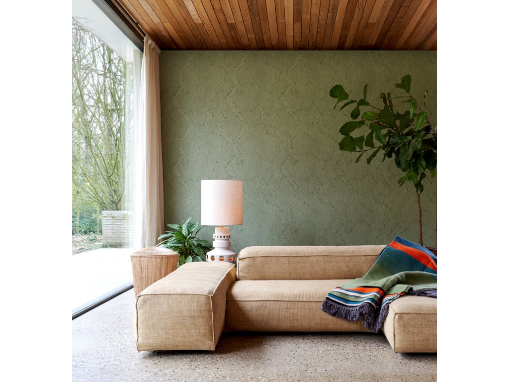 Tapeta nadčasového vzhledu, která realisticky vypadá jako textilní.