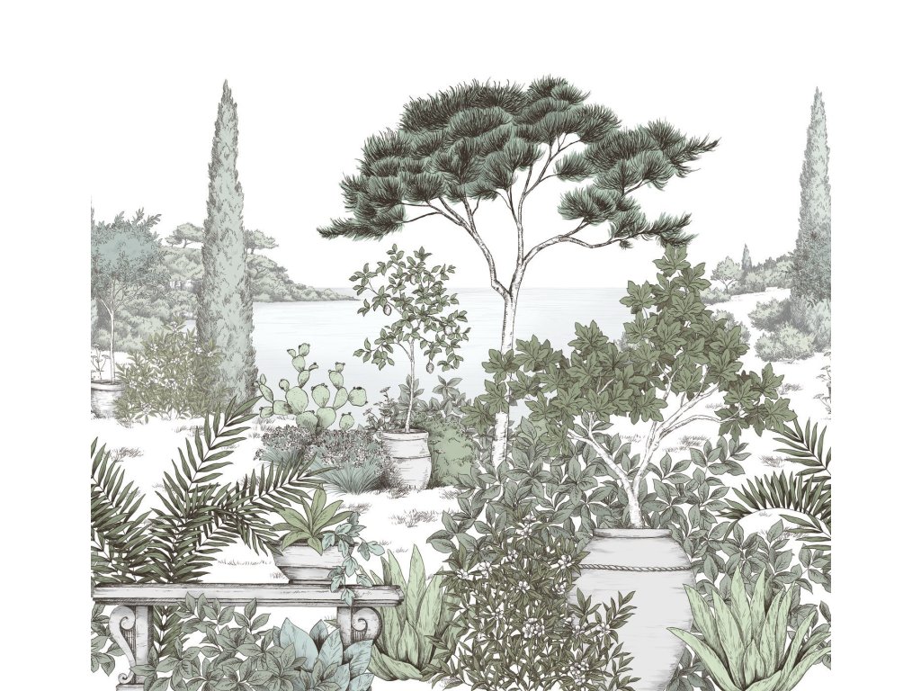 Velkoformátová tapeta CASADECO A L'OMBRE DES PINS_M VERT EUCALYPTUS 300x280 WDWD200017608